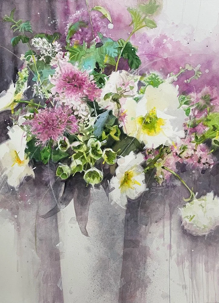 With her first exhibition she was unanimously accepted into the Northwestern Ohio Watercolor Society. Encouraged by her success she began exhibiting her work in juried art competitions. She has garnered many top awards for her florals and portraits although she is not limited to these styles (her red ’57 Chevywas particularly well received by jurors and the public).