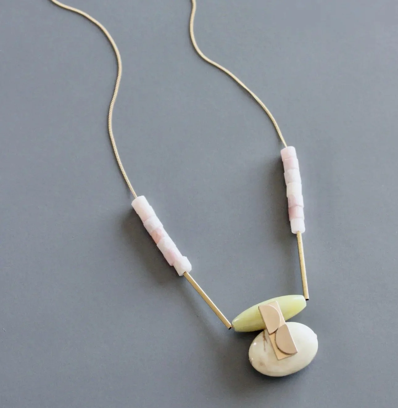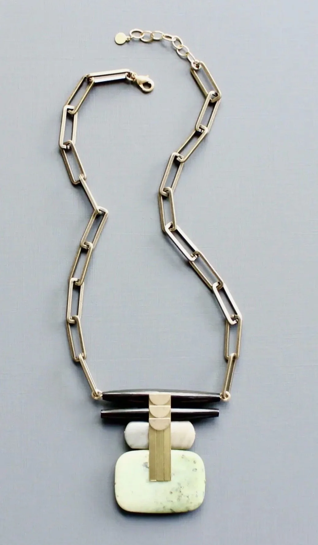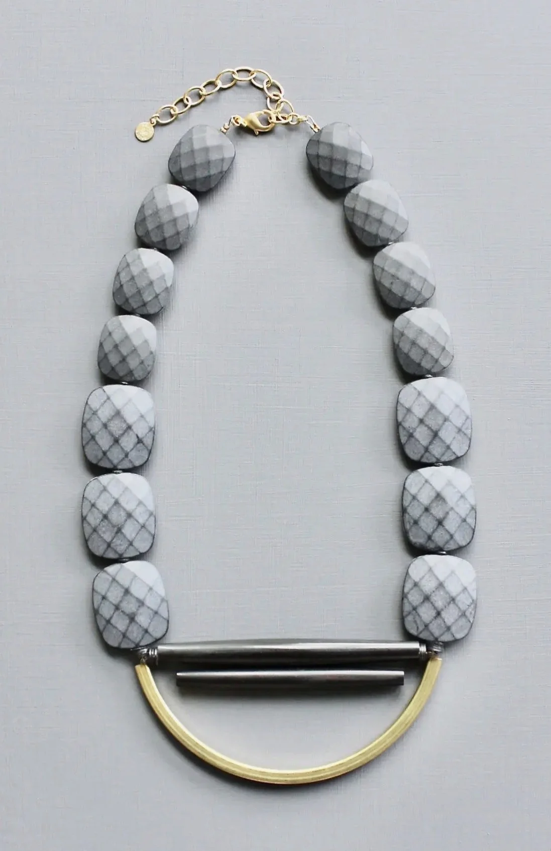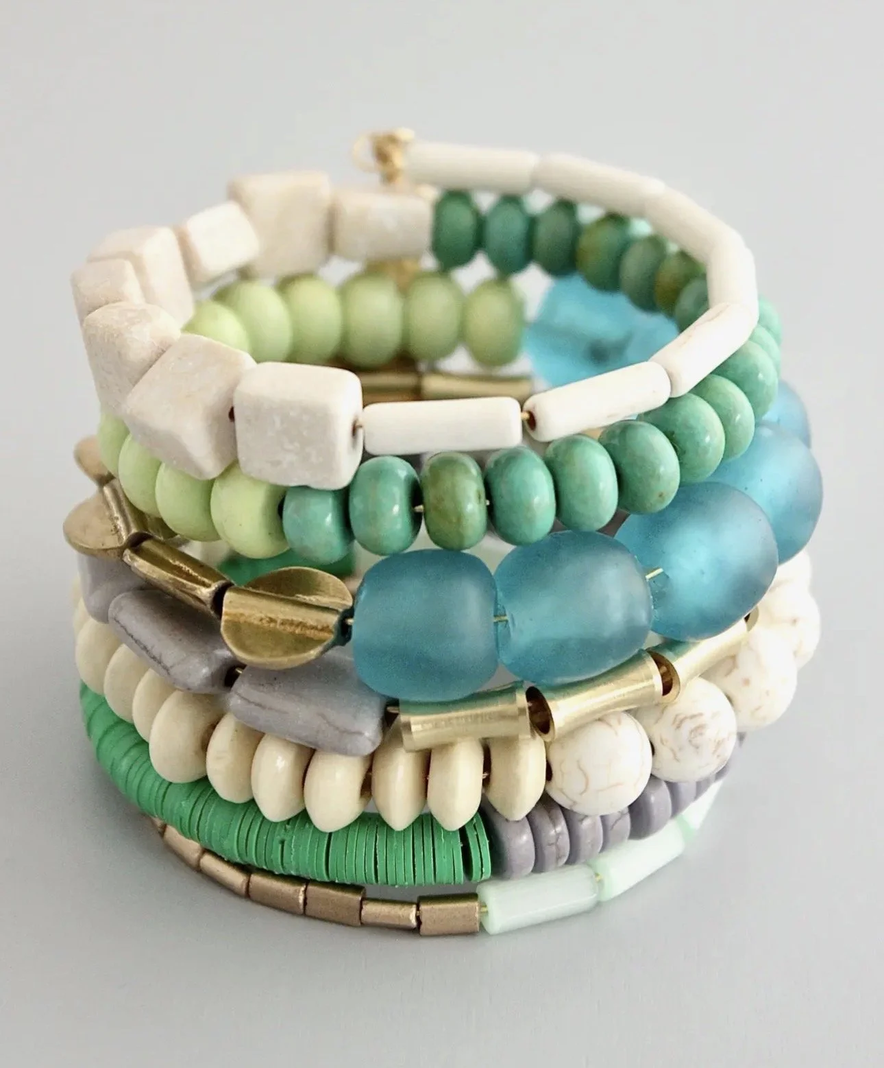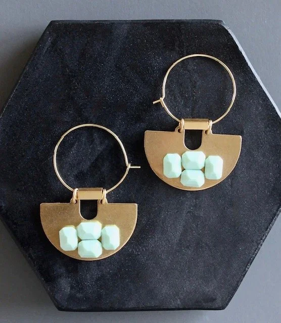 David Aubrey lines vary from delicate, meticulously assembled jewelry of monochromatic hues to larger, more vibrant pieces. Some collections are themed, whether romantic, vintage, tribal, or art deco. Each piece is painstakingly crafted with an array of raw materials, including plated and oxidized brass and white metal, semiprecious stones, vintage glass beads, Indian handmade glass beads, acrylic, and carved bone.