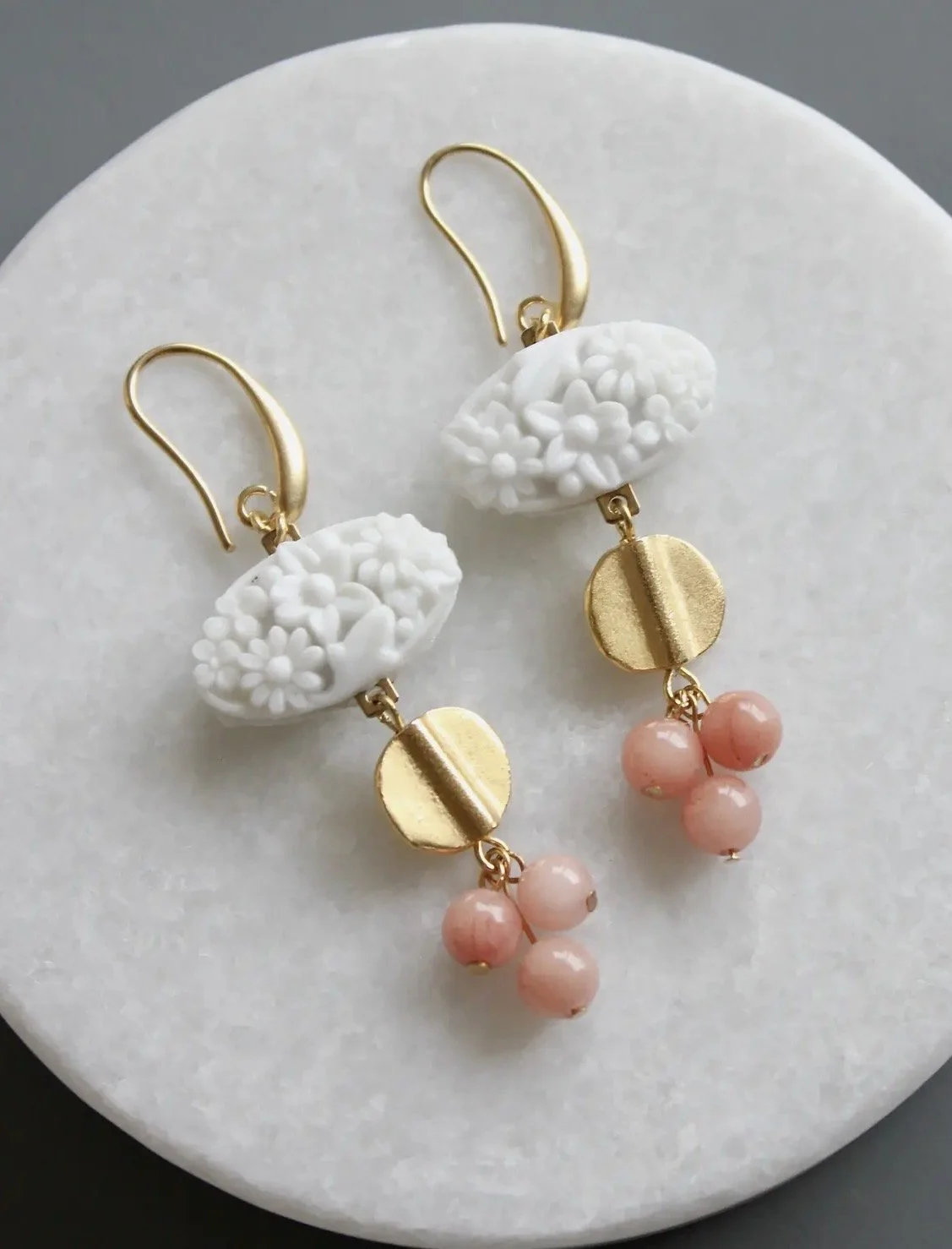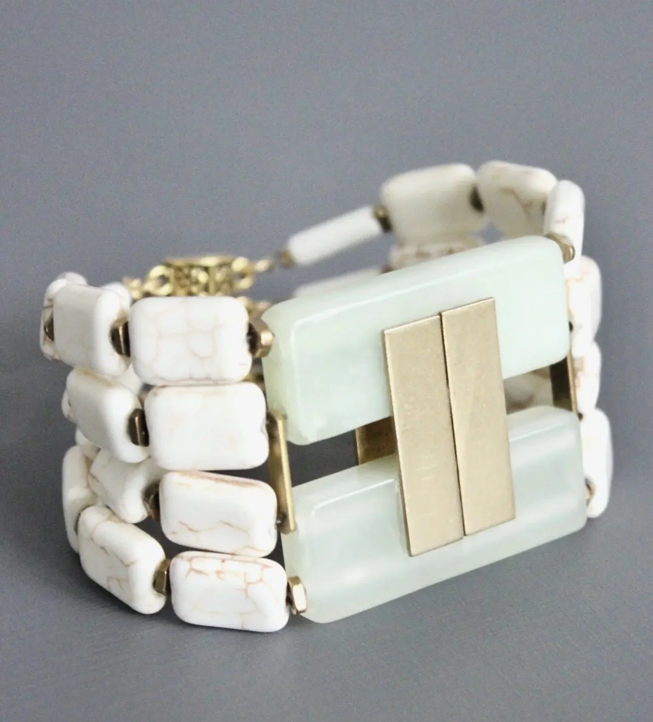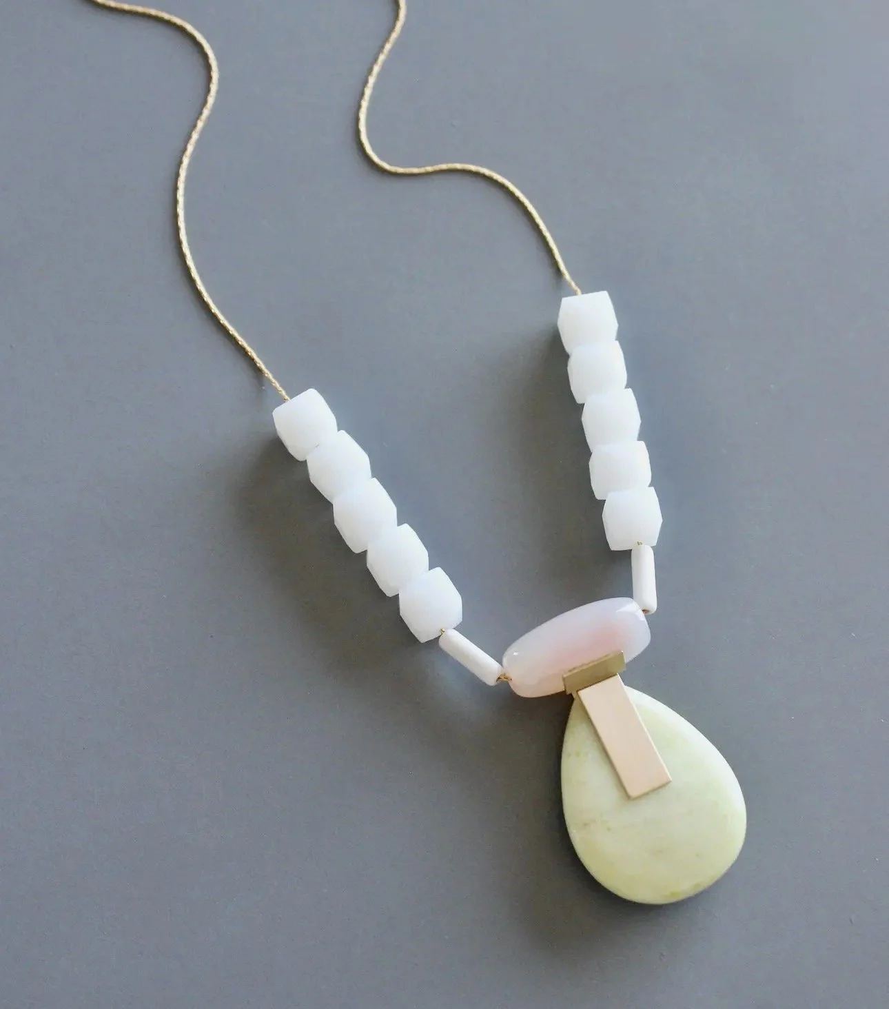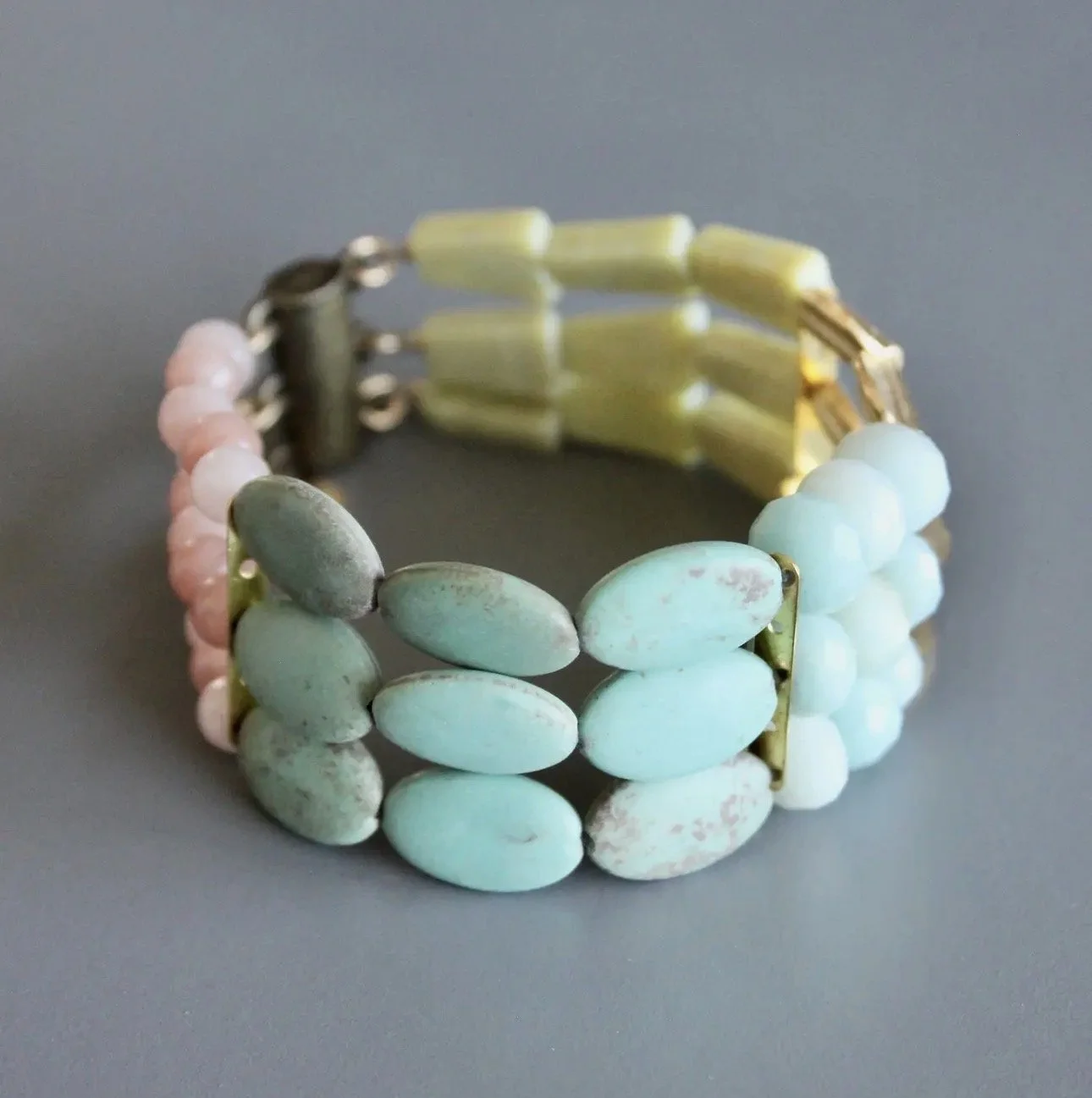 David Aubrey lines vary from delicate, meticulously assembled jewelry of monochromatic hues to larger, more vibrant pieces. Some collections are themed, whether romantic, vintage, tribal, or art deco. Each piece is painstakingly crafted with an array of raw materials, including plated and oxidized brass and white metal, semiprecious stones, vintage glass beads, Indian handmade glass beads, acrylic, and carved bone.
