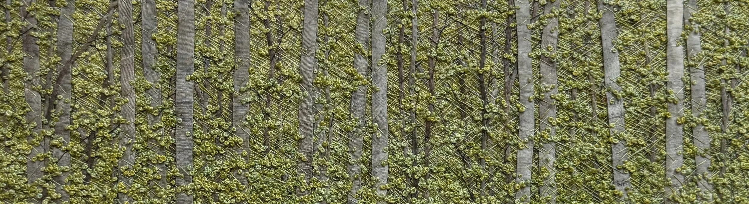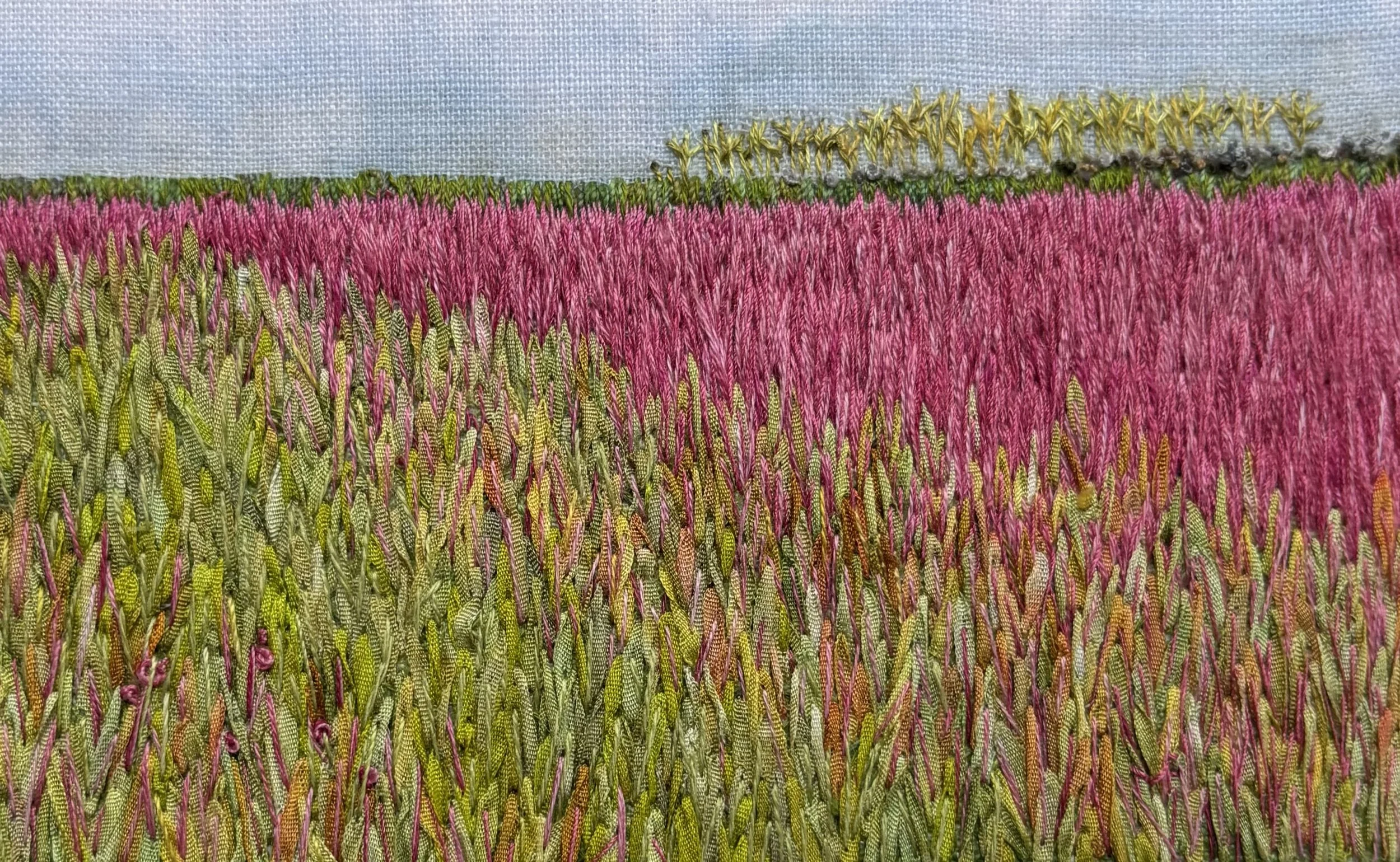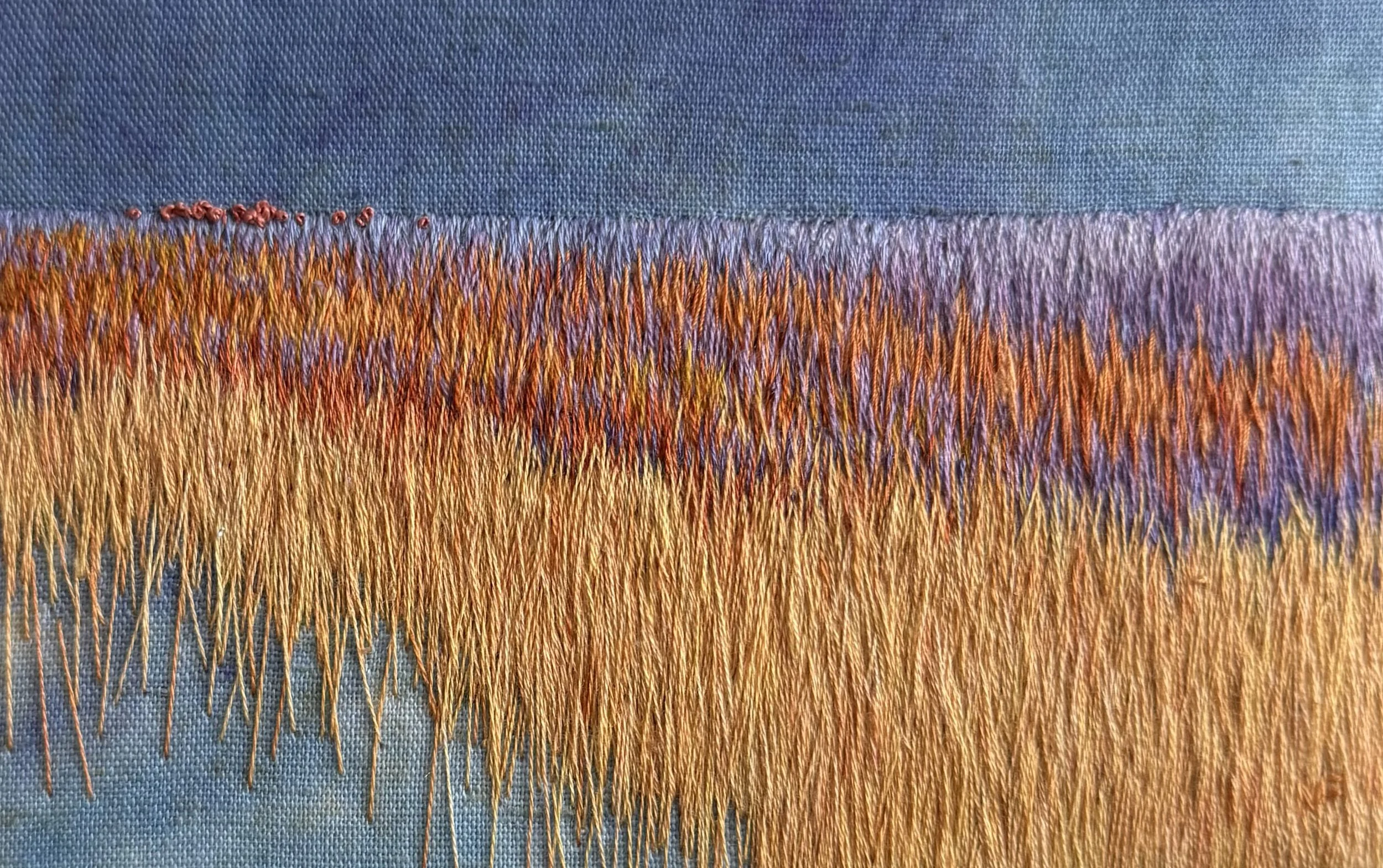 I call my work, “Landscape in Thread”. By using subtle colors and details, and complex compositions, my art expresses our human connection to the natural world. It encourages the viewer to contemplate the interconnectedness between all things.